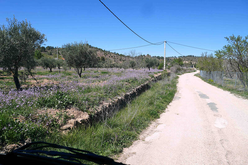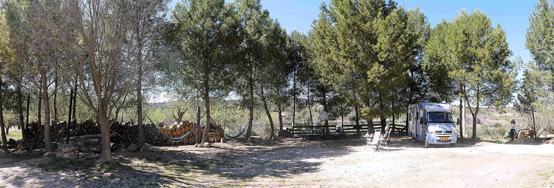 Na drie dagen op camping La Naranja in Platja de Gandia vinden we het wel genoeg. Eigenlijk zouden we nog een nachtje blijven, omdat hier op zondag een straatmarkt is. Maar we hebben we al vaak genoeg een Spaanse markt gezien en kunnen wel een beetje raden wat er zoal te koop is. Daarbij komt dat we op de camping zo nu en dan een vieze put lucht ruiken, die bij navraag ook andere campinggasten niet is ontgaan. Om half twaalf zijn we vertrekgereed voor een rit naar een camping nabij het plaatsje Ayora, in het achterland van de provincie Valencia. We kiezen hierbij voor een toeristische route, die wel korter maar ook aanzienlijk langzamer is dan de route over de snelweg. De tweede helft van de ongeveer 120 kilometers gaat over de kronkelige CV590 en betekent dat de gemiddelde snelheid op dat traject niet boven 50 kilometers per uur komt, maar wel door een mooi landschap gaat. Om drie uur melden we ons bij camping Palaz Cinco (N39.074956, W1.042303), even voorbij Ayora. Campingeigenaar Sander vertelt wat ons te wachten staat. De camping is nog in opbouw en hij stelt voor om de camper op een open plek naast zijn woonhuis neer te zetten. Om te douchen kunnen we van de badkamer in een van de nabijgelegen appartementen gebruik maken. Dat lijkt ons wel wat, want het eigenlijke camping terrein is na de regen van de afgelopen periode vrijwel onbegaanbaar. Kortom, wij zijn voorlopig tevreden en zien de komende dagen wel verder.