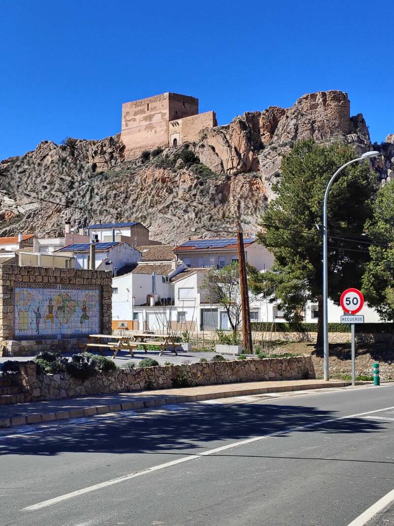 Vandaag is het, net als de afgelopen dagen, weer stralend weer met een temperatuur die oploopt naar 25 graden. Vannacht was dat wel anders, want bij het wakker worden was het maar 8 graden in de camper. Vandaag willen we te voet Ayora gaan verkennen. Een flinke inspanning voor Aukjes knieën want, behalve de wandeling door het dorp, moet er ook nog tweemaal twee kilometers van en naar de camping worden afgelegd. Het is al rond drie uur in de middag wanneer we vertrekken en dan blijkt de zon flink zijn best te doen, zodat we waar mogelijk in de schaduw blijven lopen. In Ayora rust Aukje even uit terwijl ik de plaatselijke camperplaats ga verkennen omdat we wellicht hier binnenkort gaan overnachten. Daarna gaan we naar het toeristenbureau, dat ook in de winter dagelijks geopend is. We treffen een enthousiaste medewerker die niet alleen alle gevraagde informatie verstrekt, maar ook aanbiedt om speciaal voor ons de kasteelpoort te komen openen. Ayora is op toeristen ingesteld en hoewel het momenteel nog rustig is, heeft men flink uitgepakt om het hen naar de zin te maken. Zo is er een drie kilometer lange wandelroute door het dorp uitgezet die met een rode streep op het wegdek is gemarkeerd. De route begint bij het voormalige San Francisco Convent en wordt ‘verkocht’ als zou het geïnspireerd zijn op de legende van een meisje dat opgeroeide in het convent. Ze was zo gefascineerd door de verhalen over de ‘buitenwereld’ dat zij op een nacht over de muur klom om deze zelf te gaan ontdekken. Een draad van haar rode mantel bleef aan de muur haken en de rode draad markeerde haar zoektocht door het dorp, vandaar de huidige rode streep die de wandelroute markeert. Niettemin heeft haar ‘ongelukje’ de gemeente een heleboel potten rode verf gekost, maar ons ook een gemakkelijk te volgen wandelroute opgeleverd. Halverwege de wandelroute komen we bij het kasteel van Ayora dat met een grote deur is afgesloten. Normaliter kun je toegang krijgen via de app NearKey die hiervoor bij het VVV speciaal op mijn telefoon werd geïnstalleerd. Alleen, zoals meer dingen in Spanje, bleek die niet te werken. Geen nood, de man van het VVV bood aan om zelf hard rennend vanaf het VVV de deur voor ons te komen openen zodra we hem bij aankomst aldaar zouden bellen. Aileen bleek de deur bij nader inzien door een vorige bezoeker niet goed in het slot gedaan, zodat we zelf de deur konden openen om op een bankje binnen de kasteelruimte de komst van de hard rennende VVV man af te wachten. De wachttijd? Ca, 2 minuut 30, wellicht een nieuw record voor Ayora. Na ons kasteelbezoek vervolgen we onze rode draad route tot bij de plaatselijke pizzeria, het enige restaurant dat op maandag zijn deuren opent. Al met al was het al na half negen toen we weer op de camping terug waren, maar wel met een uiterst tevreden gevoel. Oh ja, 6,96 kilometers gewandeld, ook een nieuw record voor Aukje.